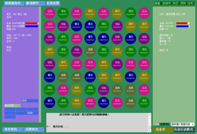 游戏的战斗是通过类似战士之谜一样的宝石消除来完成的,消除对应的颜色将会获得以下的对应效果。