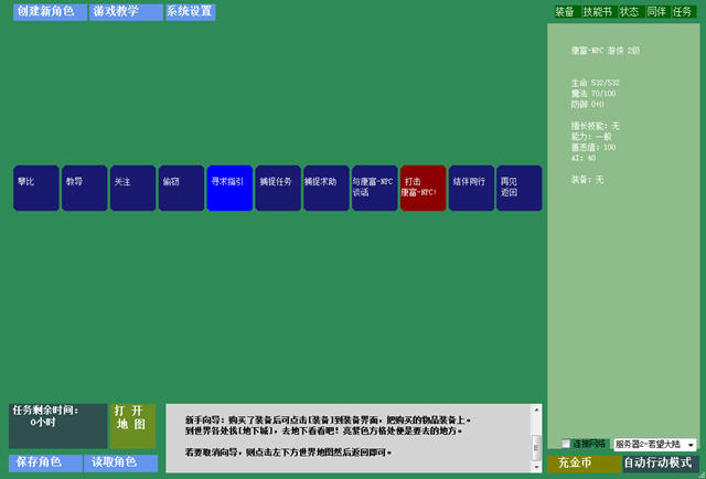 6、你可以选择让游戏成为放置类游戏,角色可智能地自动行动,以最轻松最休闲的状态进行游戏,你的角色甚至还可以在你离开游戏后继续保持在网络上自主地行动,并接受其他玩家的互动和挑战,而且你游戏中还有机会遇到自己创造的其他角色,你发现他们也正在自主地行动。