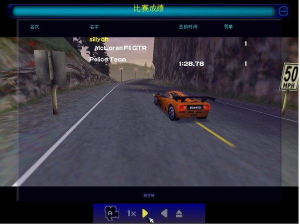 提示1:在追击赛中,怎样捉住超速者:首先要鸣警笛( H 键),并将对方逼停。可采用