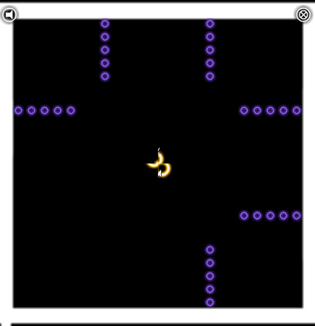 游戏提供的是一个全黑的场景,场景中摆放着紫色的圆环,你的任务就是拖拽杏色圆环吃掉摆放着的圆环,就能过关。