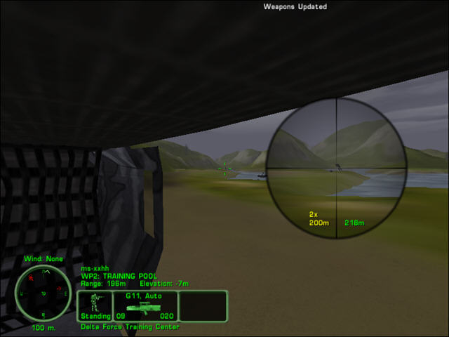 此款游戏中最明显的革新便是经过增强的游戏引擎。正如上文提及的那样,如今的《大地勇士》全面支持3D加速,不仅大大改善了游戏性能,而且提高了游戏视觉效果。如果说前两部《三角洲特种部队》游戏的地形是肢离破碎、残缺不全,那么《大地勇士》的游戏场景可堪称是细腻流畅--全部室外场景的模糊感觉已然是昔人已乘黄鹤去。物理对象经过一番整容之后,以其更高频度的多边形数和更鲜明活泼的图像纹理仪态大方地展现在玩家面前。