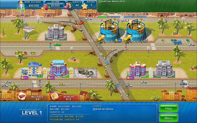 对于很多人来说,拉斯维加斯被称作“不夜城”或是“世界娱乐之都”。但对于女主角Lynette来说,它是一座机会之城。她要在这里创建酒店帝国,建造五星级的酒店,餐厅,赌城,以及更多!低买高卖竞争土地获得利润。智胜你的竞争对手,获得新的楼盘,购买耗材,并聘请工人。升级你的股份,直到城市向沙漠中的钻石般闪耀!