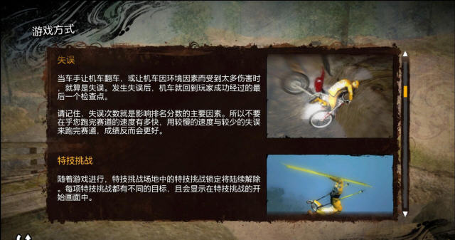 游戏中当玩家在空中做出特技时,经常会有爆炸的火花场景来配合玩家的精彩表演,在这款摩托车游戏里,你需要的不是速度,不是暴力,而是各种令人惊叹的杂耍。
