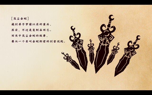 这款游戏的画面非常棒,游戏致敬与国产武侠中口碑 还算比较不错的《剑三》,引用了一段武侠中的经典角色——金蛇郎君。