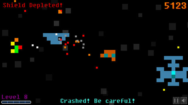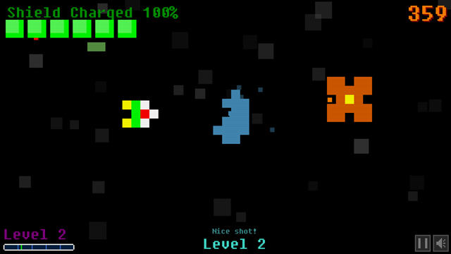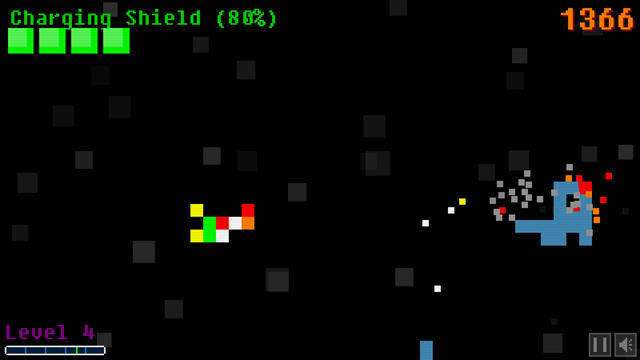 游戏中途还会有各种闪光的像素方块飘过来,吃掉它们将会获得一些额外的效果,比如增加子弹威力或者让玩家的战机更加完美。
