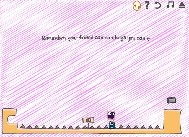 游戏有点类似于冰火人,不过在高难度的操作要求下,冰火人已经完全被这款游戏爆出翔,你在这款游戏不仅要控制两个人,而且还要非常协调的完成各种操作。