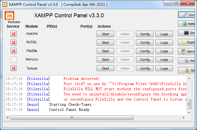 startftp:启动 ProFTPD 服务器。通过 FTP,您可以上传文件到您的网络服务器中(用户名“nobody”,密码“xampp”)。该命令将持续激活 ProFTPD,例如:执行该命令后,如果您关闭并重新启动 XAMPP,FTP 仍将处于激活状态。