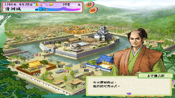 必须是浪人身份,先去拿商人见习卡,在拿“镇众卡”(京、界、大阪、博多)之前,利用二条城比武的方法入仕大名家,然后再去拿镇众卡。成为大名后,就是商人大名了。这类大名可以指挥其他大名互相作战,坐收渔利;但是不能招降其他大名。
