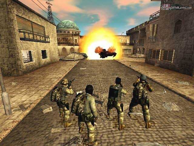 随着一声:In Coming!小分队和另外一组冲进了敌军把守的军事重镇,很快呼啸而来的炮弹就将我们炸得四处躲藏,从缺口出去沿管道进入一座三层的大屋,该建筑位于基地中心,我们的任务是掩护我军的直升机将另外一组队员安全带离!当大股敌军还没有到达之前,立即指令队友在平台上占据有利地形并补充装备和弹药!伴随着一阵阵隆隆的坦克声和AK-47的枪声,这一关感觉相当刺激,紧张激烈!终于将来犯之敌歼灭在阵地之前,安全掩护直升机将失散的兄弟顺利带离!"从室内杀出来,后面有一道大门可以进去,两辆吉普车已经等候多时了...