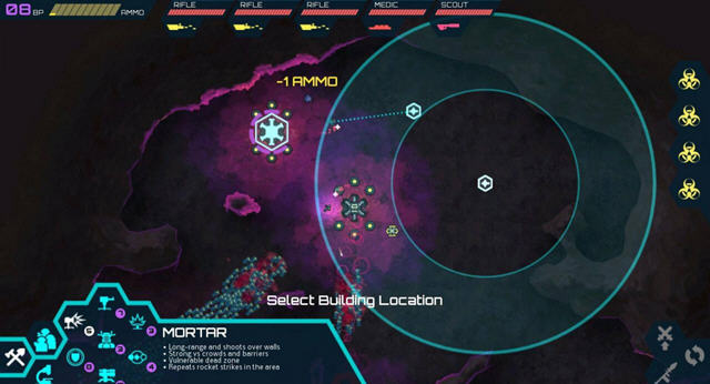 游戏体积很小,玩法也比较简单,只要尽量保证你的小队不受敌人攻击即可,利用火箭弹优先消灭掉那些会远程攻击的敌人,然后剿灭它们的老巢即可。