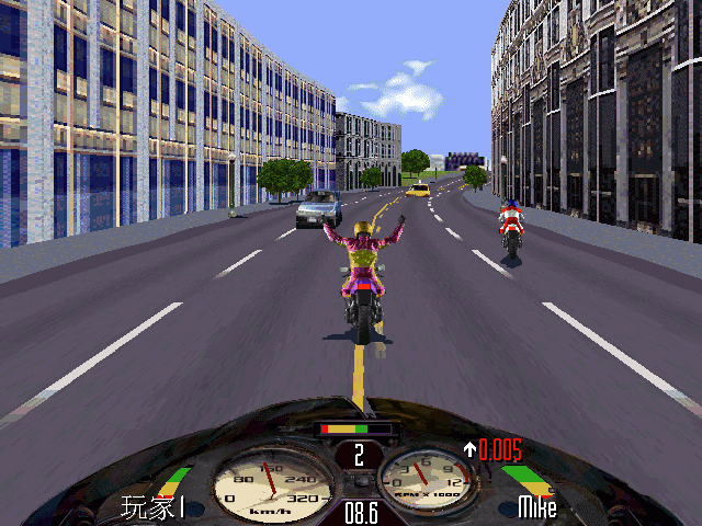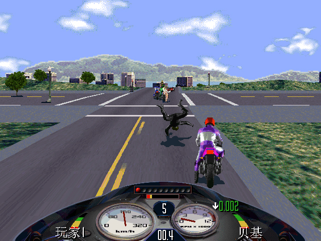 摩托犹以2002年出的最为经典,玩家数量也最多。在游戏中加入了对抗成份,比赛中你可以使用拳、脚去干扰对方,使其落后于你,是不是很卑鄙啊? 游戏中千万不能手下留情,因为对手会主动