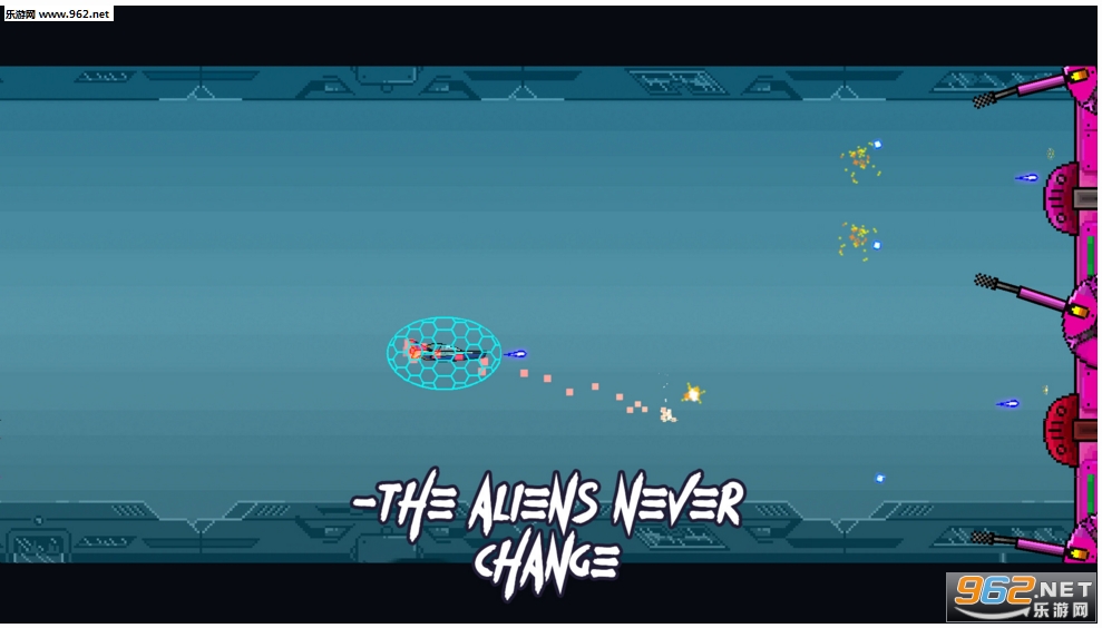 《宇宙空间大战》是一款第三人称动作射击类游戏,在这个复古式风格的游戏里很容易让我们回想起来90年代初期的小霸王游戏,在这里我们将对抗着邪恶的外星人,它们想要侵略我们的地球,我们身为国家派出来的特工,务必完成任务!