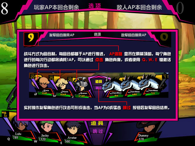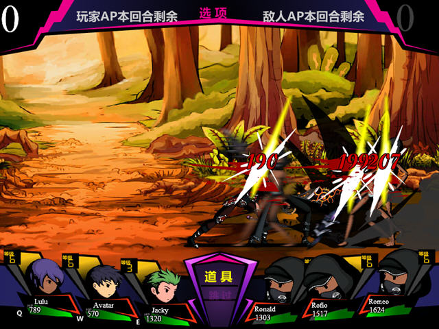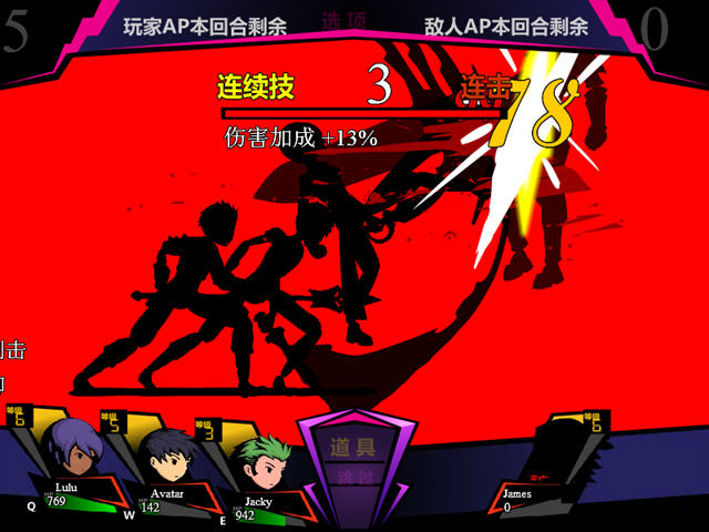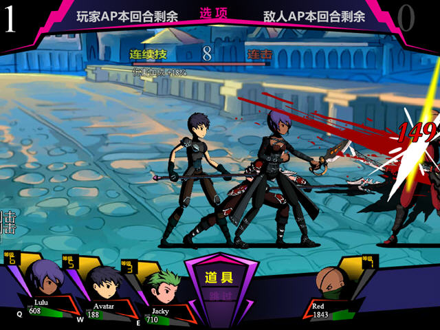 轮到自己的回合时,使用QWE选择对应的三个角色来攻击,连续攻击可以达成combo,造成更多伤害。