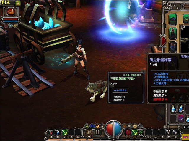 橙色:拥有5项属性的强大装备可以通过地下城中的铸造获得随机属性或插槽。相当于暗黑中的暗金装备,比较稀有。