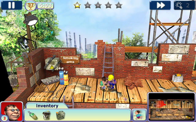 玩家的每个关卡都有5个等待着玩家去恶搞的线索,玩家的成功恶搞将会赢得星星奖励,同时用时最少最后得到的评分就越高。