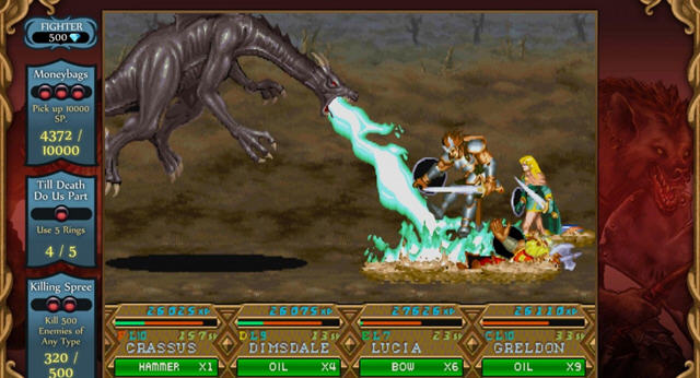 这个早些年间发售的经典街机游戏,获得了不少玩家的好评,多人合作模式以及经典的欧美地下城风格,给玩家带来了一场勇士与恶龙的战斗。