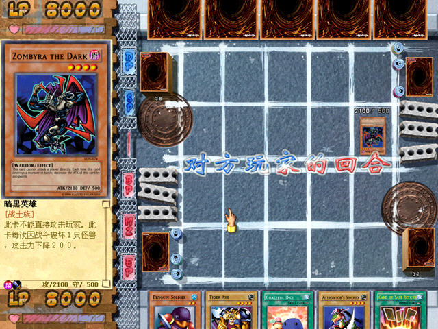 游戏王之混沌力量城之内篇是2004年发布的卡牌游戏,对玩家综合性思考是一种考验。游戏王之混沌力量首先推出城之内篇相继推出海马复仇篇,武藤游戏篇。相较于家用机平台上的“游戏王”系列游戏,这次汉化PC版的“游戏王”,可以算是真正的纸牌游戏,单纯的战术与智力的对决。