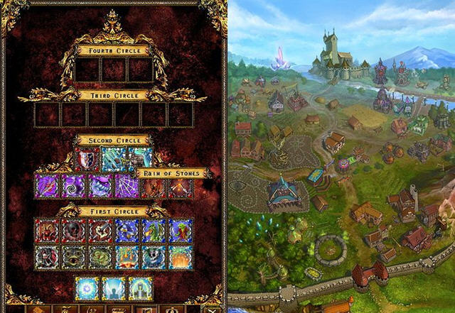 游戏继承了许多英雄无敌中的设定,玩家进入城镇后可以通过购买装备来提升自己,英雄升级后也可以选择自己需要加强的方面,同时选择技能等。
