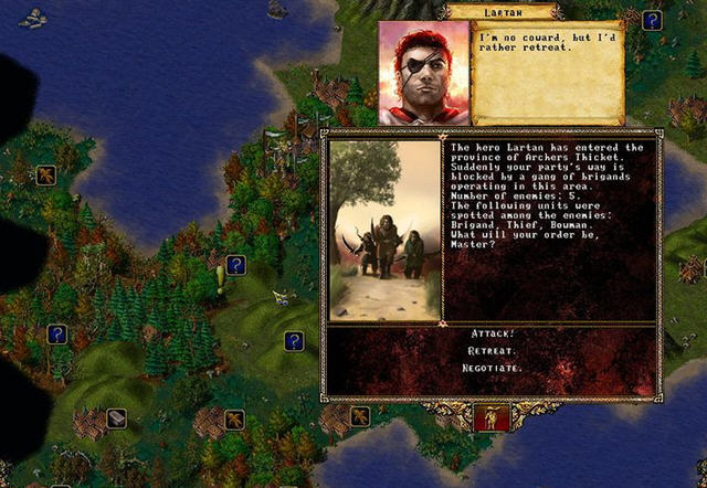游戏发行的年份比较早,几乎与英雄无敌系列没有什么区别,玩家扮演一名勇士,然后在世界各地展开冒险,通过不断的与怪物战斗来获得金币,同时还可以招募你的帮手。