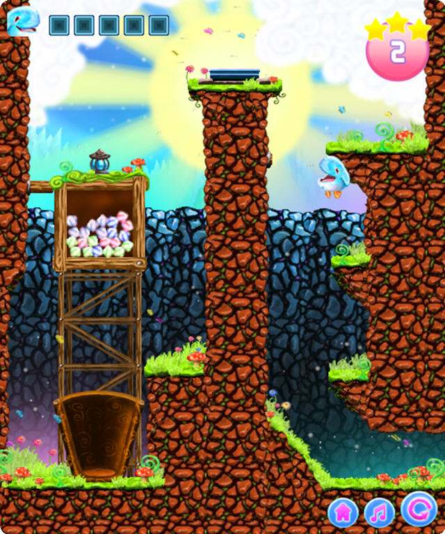 游戏中还加入了一些机关,玩家需要先触动机关,糖果才会顺利掉落在糖罐之中,有的关卡还需要玩家通过反弹来实现。