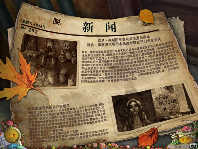 《Puppet Show: Souls of the Innocent Collector&39;s Edition》采用了“收藏版”模式,游戏中包括12个华丽的章节以及奖励的游戏时间,玩家不仅可以在游戏过程中查看详尽的图文攻略,还有唯美的壁纸和动画屏保可以收集,以及幕后花絮可以欣赏。