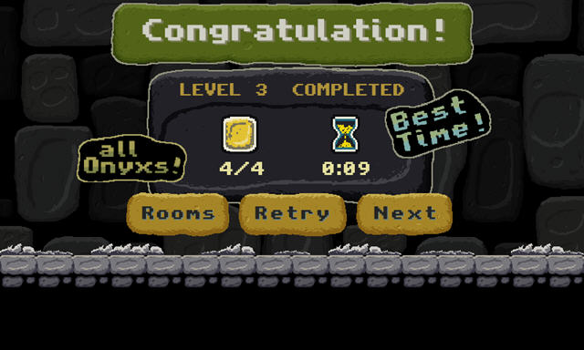 虽然游戏采用了像素的风格,但是游戏却做的非常吸引人,金币收集与所用时间将会直接影响你的评级。