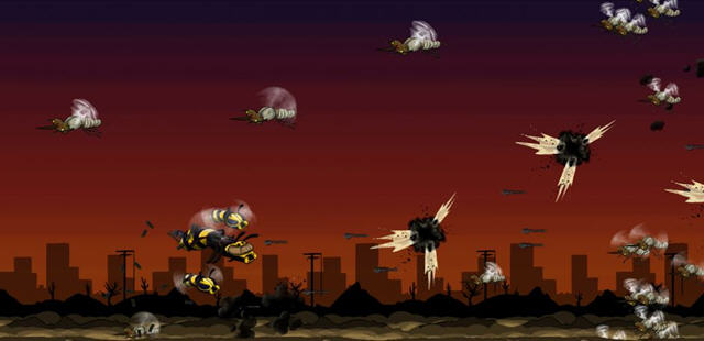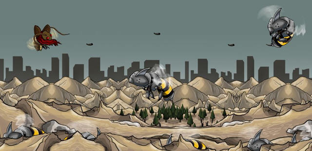 游戏的主角是一只蟑螂,你要和蚊子以及蜜蜂等来对抗,同时在飞行的过程中,你有可能会遇到各种垃圾堆中的障碍物,一定要及时的躲避它们。