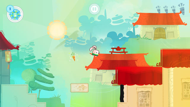 《功夫兔子 Kung Fu Rabbit》是一款一眼看上去就很吸引人的益智游戏。小清晰的色彩搭配,恰到好处的景物点缀和层次分明的场景布置令人赏心悦目。尤其白色半透明的按键与游戏画面融为一体,丝毫没有突兀的感觉。看到这样的画面,再紧张的神经也会放松下来,真正达到了休闲游戏的效果。