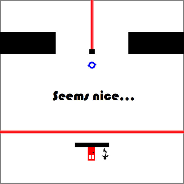 游戏里是一个无边的世界,左右互通,上下也互通,你要利用这个特性,想方设法到达出口处过关。