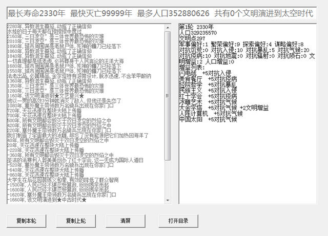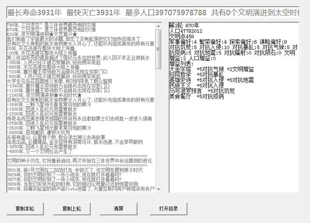 性质类似于进度条,基本灭亡分散分布在各个时代了(相信还是远古和原子时代死的最多)可以保存日志了。