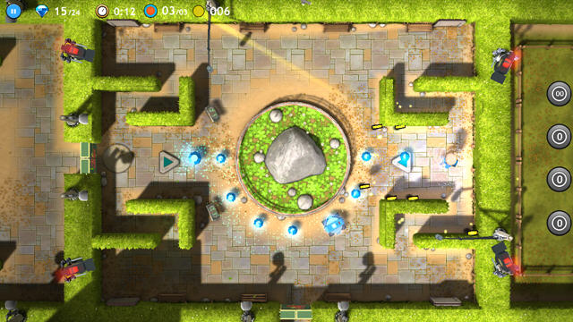 游戏虽说是迷宫,但是实际上游戏的迷宫难度并不大,因为玩家可以通过俯角来看到地图的全貌,玩家需要注意的就是躲避开游戏中的各种障碍。