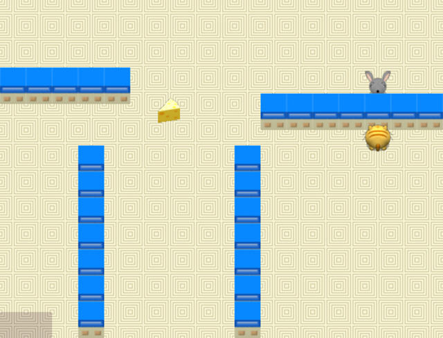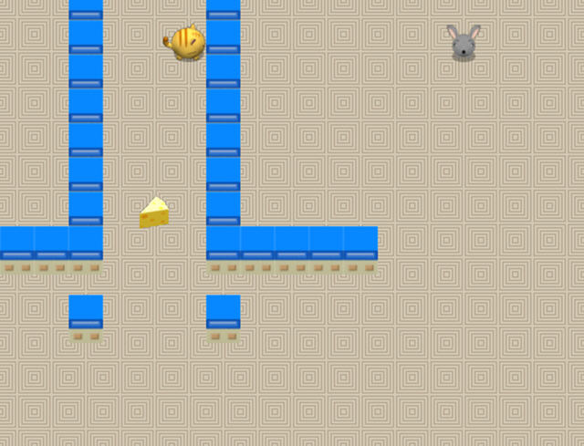 本游戏的玩法相当简单,游戏开始时,猫的附近会有一块奶酪,当老鼠接触了奶酪之后就会将奶酪吃下去,而猫也会抓狂跑来抓我们的小老鼠了 并且老鼠一旦出现在猫的视线范围内就会加速来追老鼠,此时就要小心被抓到了。