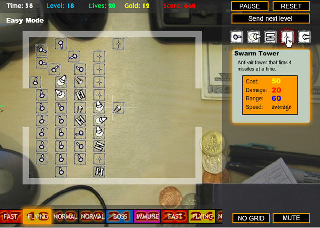 桌面塔楼防御与坚守阵地系列基本上完全相同,不过没有坚守阵地那样的画面,整个游戏比较简单,经常玩塔防游戏或者稍微有点英文基础的玩家上手都毫无问题。