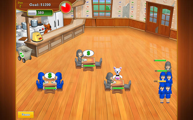 游戏中玩家面对的将会是一个真正的午餐高峰期,客流量将会非常大,玩家的桌子绝对不够入座,所以你需要通过配对颜色以及更加快速的服务来不断提升顾客的满意度,赚取更多的小费。