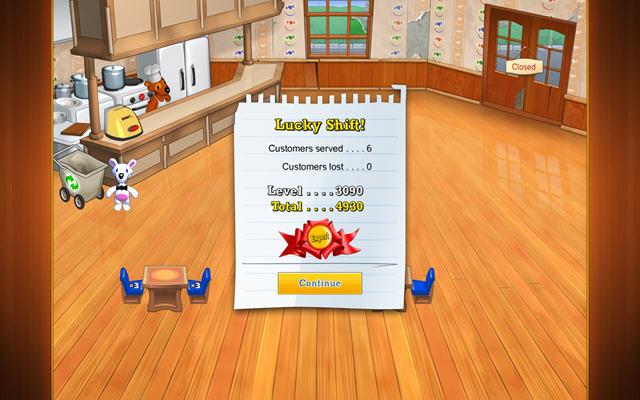 Lunch Rush 是一款可爱的时间管理类游戏,游戏的剧情讲述的是熊镇举办了一场优秀餐厅大赛,优胜者能够获得大量的奖金。而主角——一只白熊正感觉厌倦了每日重复的生活,看到了比赛的宣传单决定参与比赛。与许多经典的时间管理类游戏一样,你需要将客人带到位子上,记录点的菜、上菜、收拾盘子等等,但它最有创意的在于加入了顾客和椅子颜色的对应,将顾客放在相同颜色的椅子上能够获得额外分数,一把椅子放置多次的同样颜色的顾客会累加倍数。