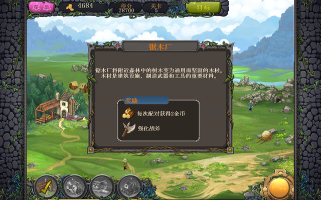 游戏跟同类游戏一样,玩家完成的关卡挑战将会不断的完善王国中的建筑,随着玩家完成的关卡越来越多,整个王国也将看起来更加繁荣。