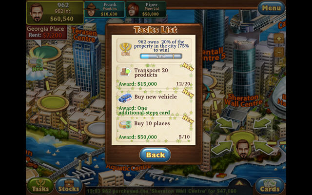 大富翁中玩家主要靠买地与运气来获胜,而在这款类似大富翁一样的《疯狂贸易》系列中,则加入了一项可交易的内容,玩家还可以通过低买高卖赚差价的方法来获得更多的金钱。