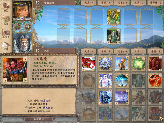 魔幻卡牌是一款欧式的卡片对战游戏,跟大多数的卡片游戏一样,卡片分为怪物卡,魔法卡两种。怪物每回合会攻击对面敌方格子,如果有怪物就先攻击怪物卡如果没有就直接攻击玩家本身,玩家各有60点生命值,用完即输掉比赛,玩家需要合理的摆放怪物卡的位置,在灵活的运用不同怪物卡的效果与各种魔法卡,来攻击对手或给自己加血加状态等等。