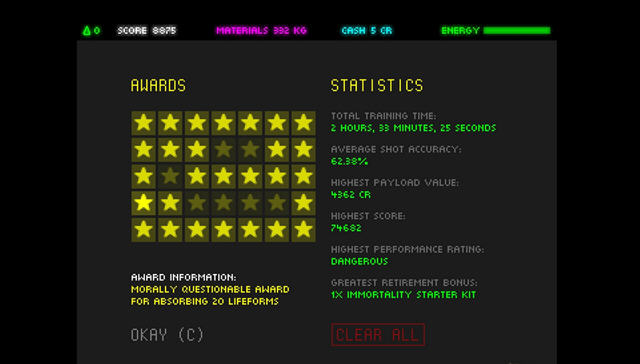 游戏的星星勋章奖励非常多,而且还会有各种有趣的统计来记录玩家的各项数值,比如游戏时间,最高分等游戏数值。