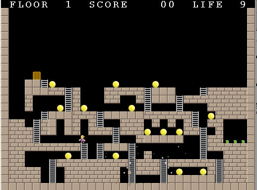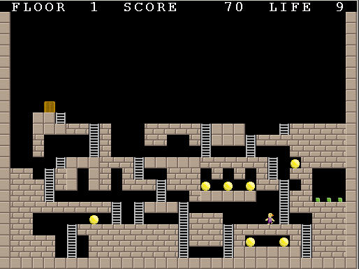 方向键控制人物的左右移动,空格键放炸弹,吃掉地图中所有的金豆,进入下一关的门就能打开。