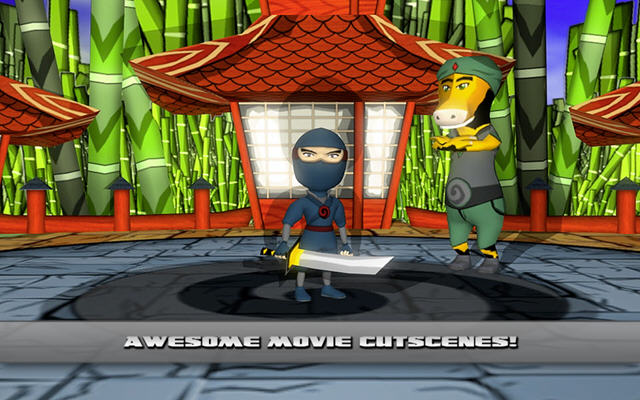 每个人都知道要成为一名真正忍者,必须打败一只巨大的牛头怪。这只特殊的牛头怪把自己藏在一大群丛林生物的后面:猪的王国,骷髅部落以及迷你金牛座。你将扮演NinjaGuy,牛博士的新学生,展开有趣、快节奏的动作冒险旅途。画面风格跟《武士II》有点像,但是没有《武士II》那么血腥,而是充满了喜剧性。
