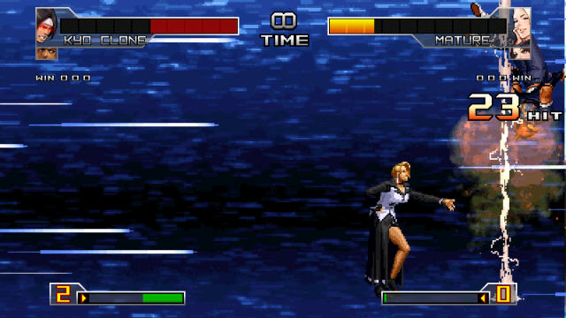 kofsky中集结了很多拳皇中的boss级人物,包括相比原版更加BT的黑化八神以及黑阿修,移动速度以及必杀等都非常的强力。