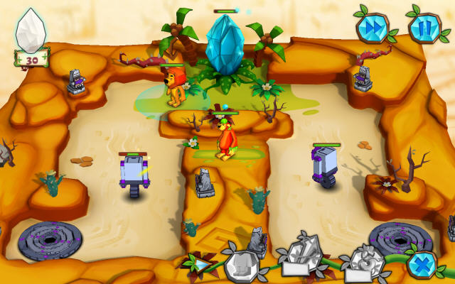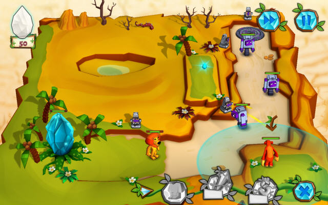 这款游戏的主题很明确,放置你的丛林动物,然后抵挡住机器人的进攻, 只要保证水晶的完整就能够取得胜利。