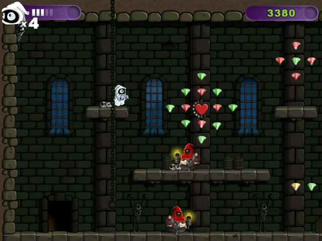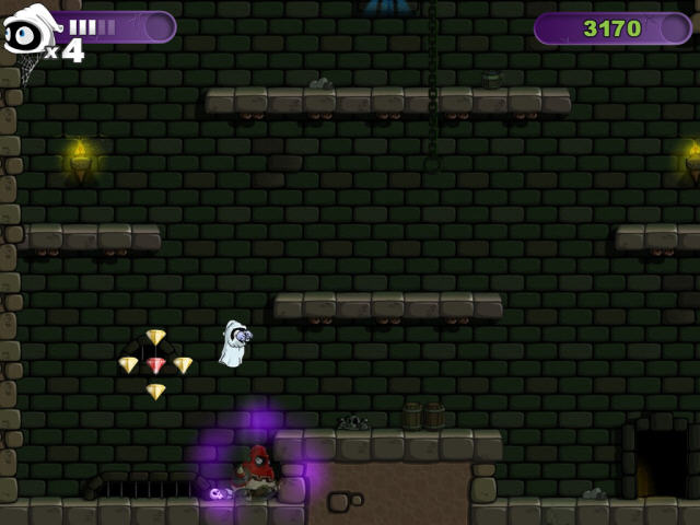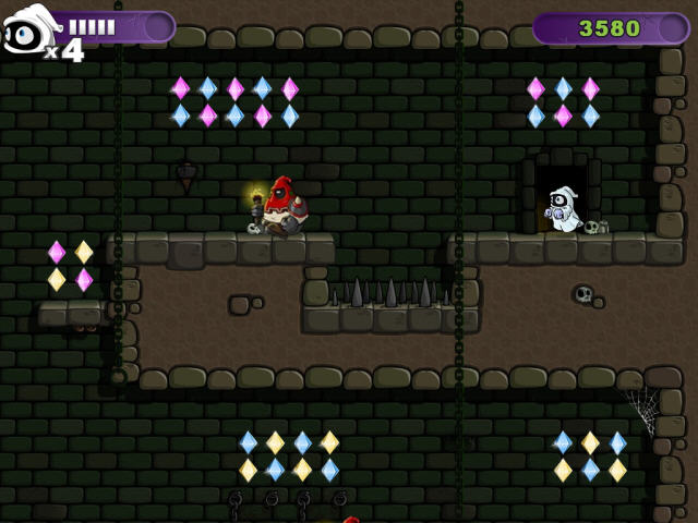 你作为一只小幽灵,通过地下深处的一个神秘的城堡,收集钻石和神奇钥匙。但要小心,周围危机四伏。