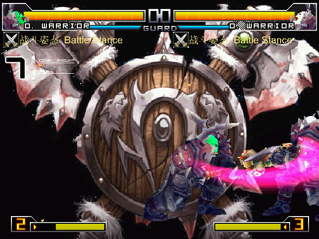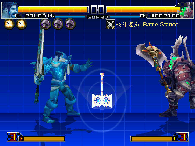 这款mugen最大的亮点无疑就是人类圣骑与兽人战士这两个犀利角色的加入了。人类圣骑可以有两种光环,而兽人战士则可以切换3种姿态。