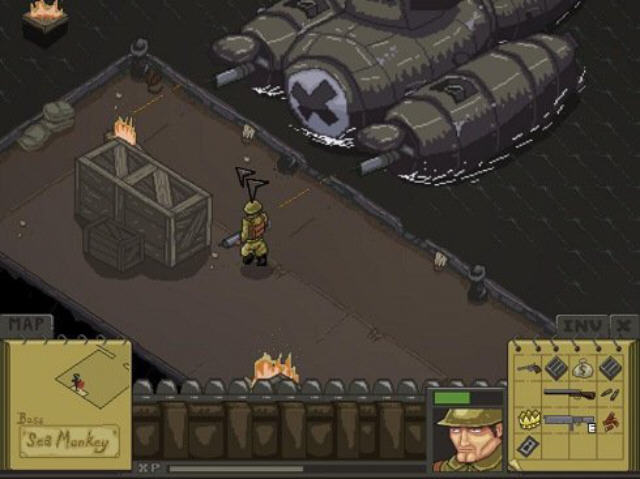 游戏的名字起来好像是个很严肃的战争游戏,但是进入游戏后你会发现游戏到处充满着恶搞的情节,从主角叼着一支烟的造型,到你在部队营地受到的各种惊吓倒地的“惊喜”,都会让你会心一笑。