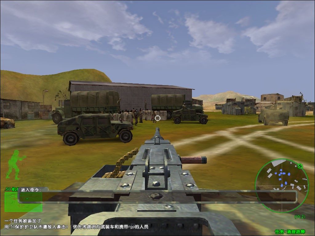 队员们纷纷跳上运输车开始了押运行动。当然叛军不会为此而善罢甘休,一路上不断有.50机枪改装车和7.62毫米的轻装甲车来骚扰,步兵也手持ak47加入战斗,远处还有rgp不断飞来,押运任务较为艰苦,车队冲破层层阻力后,艰难的到达了联合国的基地。