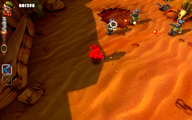 《游击队鲍勃》(Guerrilla Bob)是一款充满了紧张刺激和火爆要素的射击过关游戏,卡通风格的画面和穿插整个游戏的幽默令杀戮也变得不在那么残忍,整体的风格颇有当年那款射击过关游戏《古巴英雄》的风范。在Guerrilla Bob里,玩家将要扮演前军队英雄Bob,作为游击队员的他擅长使用各种大杀器,机枪、散弹枪、红箭筒和火焰喷射器什么的都不在话下,他还能用收集到的钱购买更多更强力的武器,并且孤身一人面对无数的敌人并且要将它们全部打倒!游戏中令人感到惊讶的优秀画面,细致的场景表现力和丰富的色彩,每一关内极富个性有诙谐感的敌人和强大的BOSS,让人在游戏的时候能够享受到更爽快的视觉效果。加上节奏感十足的战斗背景音乐,和Bob那充满了幽默感的豪放感的话语,更令人感受到更多的游戏乐趣。