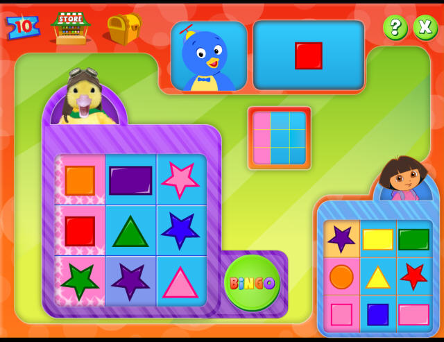 尼克宾果游戏—英文名称:Nick Jr. Bingo,一款和朵拉等众多Nick Jr.经典动物人物进行的填格子类的宾果游戏。