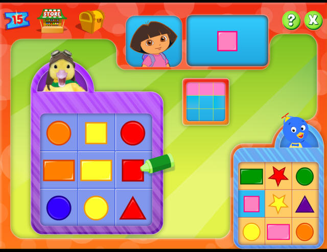 游戏的玩法实际上并没有太大的难度,只要根据中间显示的不同颜色形状在自己的方格中找到点击即可,毕竟作为一款幼儿的益智游戏,它并不太适合我们这样的年龄。